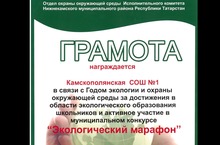 Цель марафона: создание единой системы теоретических и практических видов деятельности школьников по сохранению окружающей среды. Было проведено много интересных, познавательных мероприятий. По итогам проведенного «Экологического марафона» наша школа награждена ГРАМОТОЙ за достижения в области экологического образования школьников и активное участие в муниципальном туре.