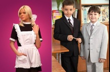 - девочки – платье коричневого цвета, черный и белый фартук;