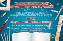 МБОУ «КАМСКОПОЛЯНСКАЯ СОШ №1» ПРИГЛАШАЕТ ВАС НА ПОДГОТОВИТЕЛЬНЫЕ ЗАНЯТИЯ В ШКОЛУ БУДУЩИХ ПЕРВОКЛАССНИКОВ. ЖДЕМ ВАС В НАШЕЙ ШКОЛЕ 4 ФЕВРАЛЯ В 10.00Ч. С СОБОЙ ИМЕТЬ: РУЧКУ, ЦВЕТНЫЕ КАРАНДАШИ, ТЕТРАДЬ В КЛЕТКУ И КЛЕЙ-КАРАНДАШ.
