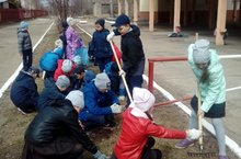 Учащиеся начальных классов не отстают от взрослых и активно участвуют на субботнике.