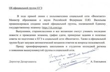 В ходе прямой линии с пользователями социальной сети "Вконтакте" Министр образования и науки Российской Федерации О.Ю. Васильева проанализировала создание новой официальной группы, посвященной Единому государственному экзамену: https://vk.com/ege.