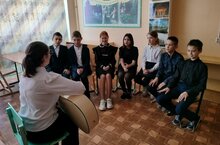 На уроке родного языка Губайдуллина О.М. с учащимися 6в класса исполняли татарские народные и эстрадные песни под гитару. -
