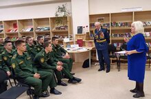 В библиотеке корпуса прошел классный час для кадет 25-го и 27-го взводов, с участием сотрудника нашего корпуса ветерана боевых действий Козлова Виктора Егоровича, награждённого множеством орденов и медалей. -