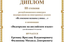 которые приняли участие в Республиканском конкурсе видеороликов на иностранных языках "Их именами названы улицы..." и заняли почетное призовое III место!