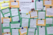 Накануне Дня Снятия блокады Ленинграда в актовом зале корпуса состоялся просмотр всеми кадетами документального фильма «Алтарь Победы». Затем кадеты поделились своими мыслями о просмотренном фильме, об этих страшных днях и о войне на бумаге, и мы создали такой стенд впечатлений кадет о просмотренном фильме "Алтарь Победы" в память о Дне снятия блокады города Ленинграда