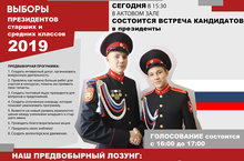 На днях в актовом зале состоялась встреча кандидатов в президенты корпуса с кадетами. Выдвиженцы – Артур Ягафаров и Матвей Морозов. С программой ребят вы можете ознакомиться на фото.