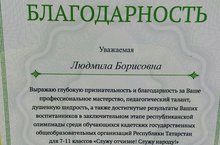 Недавно в адрес педагога нашего корпуса Людмилы Борисовны Шайтановой пришло благодарственное письмо за профессиональное мастерство и подготовку воспитанников в заключительном этап республиканской олимпиады «Служу отчизне! Служу народу!»