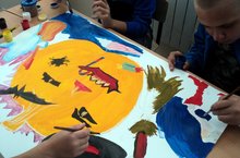 Дискотека была приурочена к загадочному празднику - Halloween. Весь корпус был украшен тематическими газетами, которые рисовали ребята.