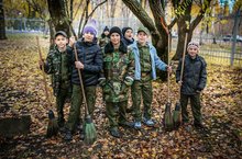 Кадеты и их воспитатели вооружились метлами и ведрами, что помогло очистить территорию корпуса от осенней листвы.