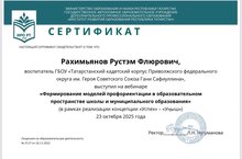 23 октября 2025 года прошел вебинар по теме «Формирование моделей профориентации в образовательном пространстве школы и муниципального образования» (в рамках реализации концепции «Успех» – «Уӊыш»), на котором выступил воспитатель 9 взвода Рахимьянов Р.Ф. с профориентационным проектом «Школа будущего командира». В ходе вебинара были обсуждены ключевые аспекты и методы профессиональной ориентации, которые помогут кадетам не только лучше понять свои интересы и склонности, но и сформировать необходимые компетенции для успешной карьеры в будущем.