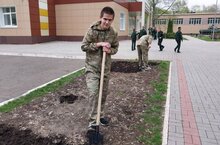 А кадеты 2 взвода в преддверии Первомая -Дня международной солидарности трудящихся, Дня весны и труда - под руководством Галлямова Венеры Гусмановны благоустроили территорию корпуса.