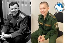Для этого необходимо было сделать коллаж из двух фотографий: улыбающееся лицо и улыбающееся лицо Ю.А. Гагарина. -