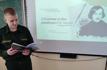 Кадеты посмотрели видеоролик о детстве писателя, об обучении в Гимназии, познакомились с творчеством и первым литературным проектом Гоголя. Узнали, какое произведение принесло Гоголю успех и сколько ему было лет, когда он стал известным русским писателем.Знакомство с фрагментами биографии классика позволило узнать, как происходило становление юного гимназиста как писателя и как рано у него проявилось стремление к литературному творчеству.
