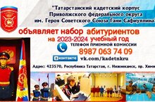 С 1 марта 2023 года ГБОУ "Татарстанский кадетский корпус Приволжского федерального округа имени Героя Советского Союза Гани Сафиуллина" объявляет набор абитуриентов на 2023-2024 учебный год. -
