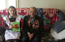 "Ветеранны бүләклә" 07.05.2016 Укучылар Бөек Ватан сугышы ветераны Кирилов Сергей Петровичны Җиңү бәйрәме белән котладылар.