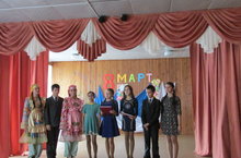 8 Март - Халыкара хатын-кызлар көне 05.03.2016 Бүген мәктәптә 6 нчы сыйныф укучылары 8 нче Март бәйрәменә карата ял концерты оештырдылар. Укытучыларга, кызларга төрле биюләр, күңелле җырлар бүләк иттеләр.