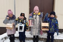 Обучающиеся нашей школы активно включились в акцию "Кормушка". Первоклассники совместно с родителями изготовили кормушки и повесили на ветку дерева. Ребята понимают как тяжело зимуется птицам, как они нуждаются в нашей помощи!