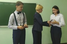 06.09.2020 Награждение обучающихся 9А класса- Романовой Ксении и Хусейнова Ильяса "Значком ГТО".