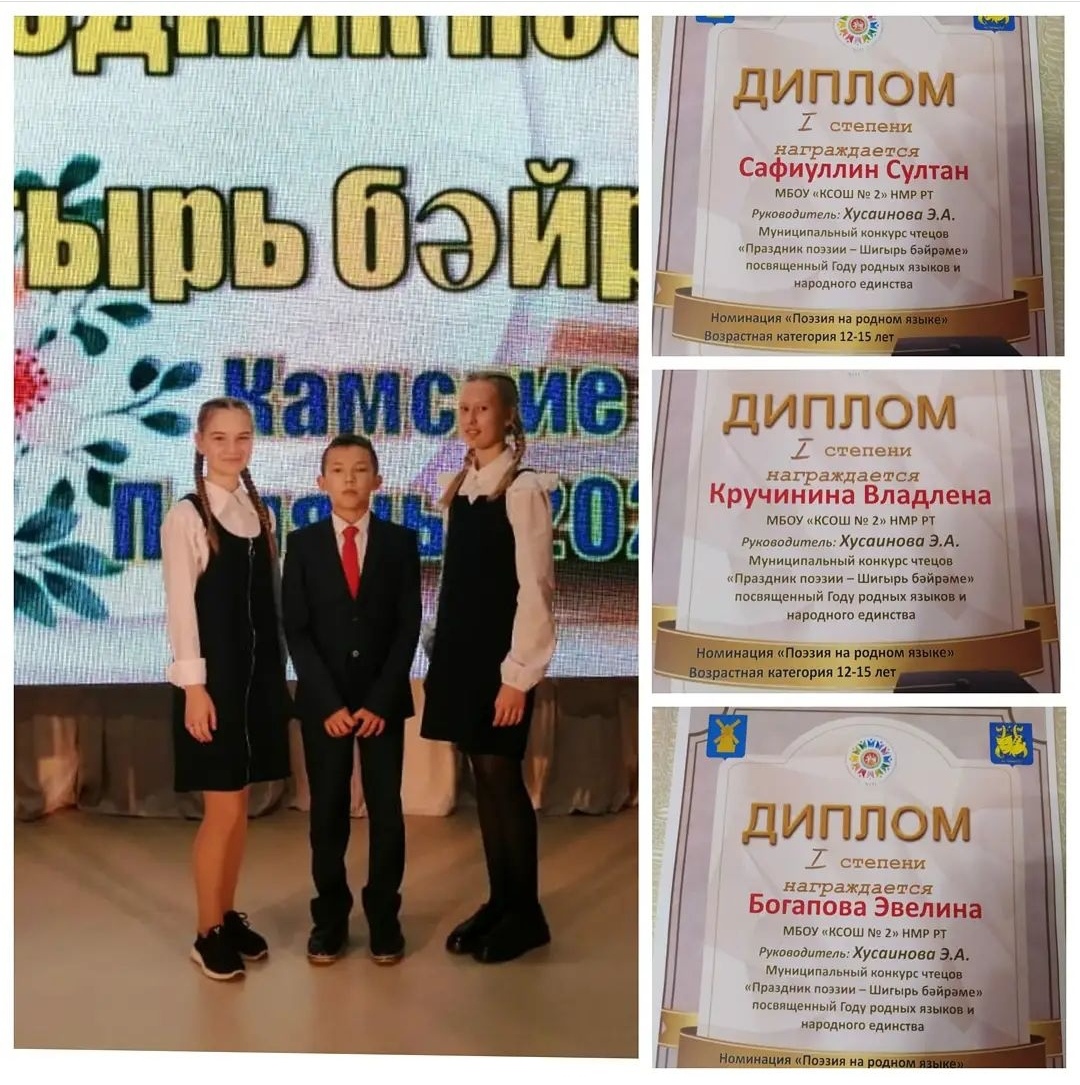 Учащиеся нашей школы приняли участие в муниципальном конкурсе чтецов "Праздник поэзии", посвященном Году родных языков и народного единства. Поздравляем их с победой. (Учителя: Михалаш Т.В., Агмалова И.Р., Гараева М.А., Хусаинова Э.А.)