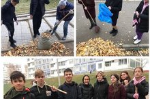 Обучающиеся школы вышли на уборку территории школы.