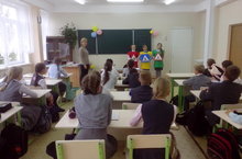 Песнева Н.В. для учеников 3 Б класса провела классный час под названием "Правила движения - достойны уважения". В этом ей помогли и ученики 7 В класса.