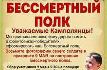 Бессмертный полк 19.04.2017 Близятся майские праздники и самый священный праздник народов нашей страны - 9 мая. По традиции в этот день все заинтересованные люди выходят с портретами своих родственников- участников ВОВ в одном строю. Приглашаем всех принять участие в параде Бессмертного полка.