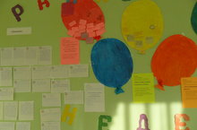 В классах вывешиватся красный шарик, а все ученики носят красные смайлики.