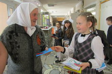 7 мая в 10.00 школа открыла свои гостеприимные двери дляуважаемых ветеранов, участников войны и труженников тыла.При входе их встречали ученики 8б класса, прикрепляли им георгиевскую ленточку, ученики младших классов дарили праздничную открытку собственного изготовления. Всех участников пригласили в столовую школы, где им накрыли столы работники соцзащиты. Учащиеся школы, солисты студии "Элегия", ансамбль татарской песни подготовили и провели концерт для дорогих гостей