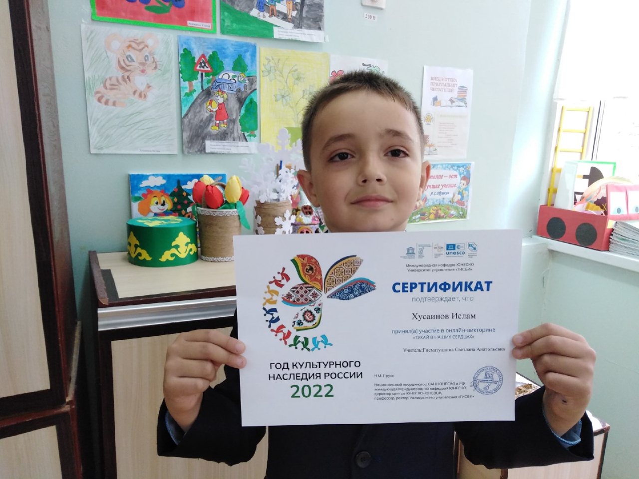 Ученик 1в класса Хусаинов Ислам принял участие в онлай - викторине "Тукай в наших сердцах"