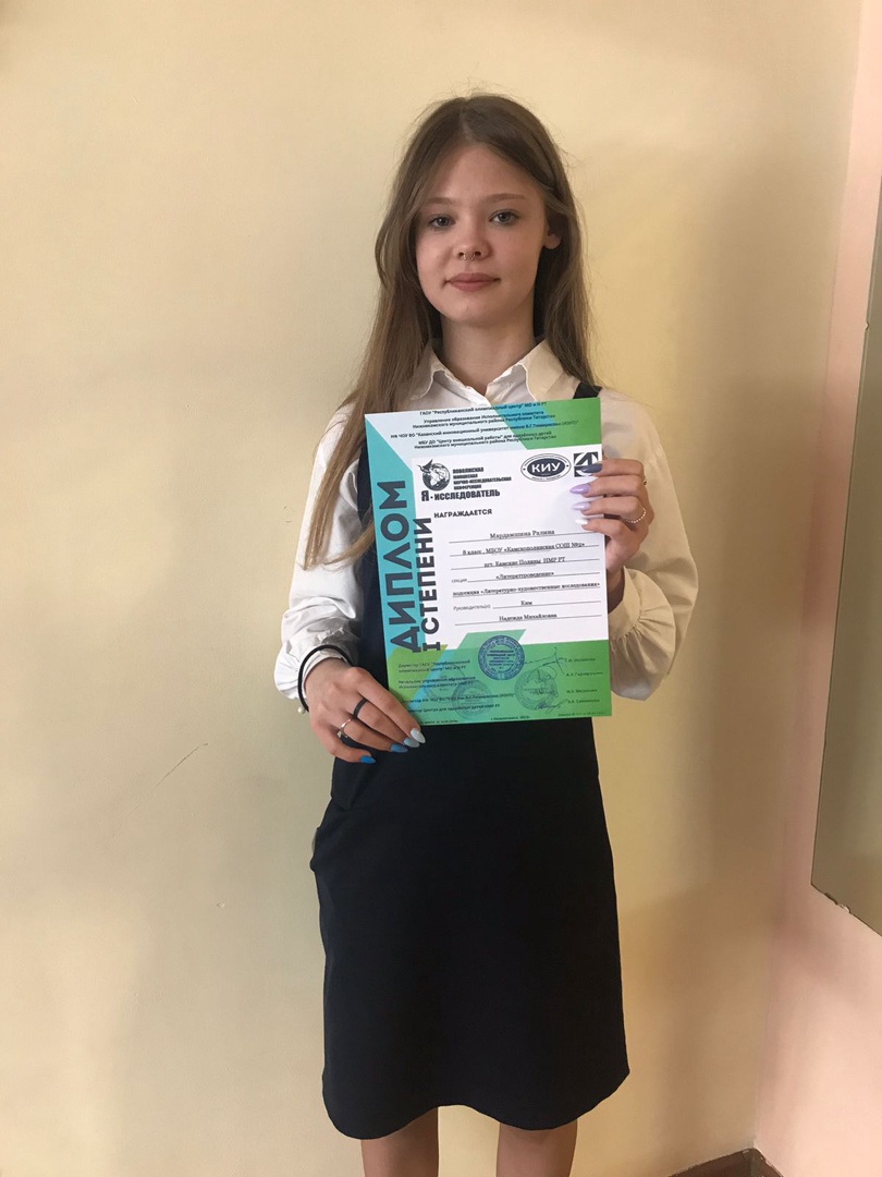 Мардамшина Ралина, ученица 8А класса стала Победителем Поволжской юношеской научно- практической конференции «Я-исследователь» (руководитель: Ким Н. М. )