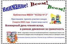 Обучающиеся школы продолжили участие в акции: "Читаем вместе! Читаем вслух!"