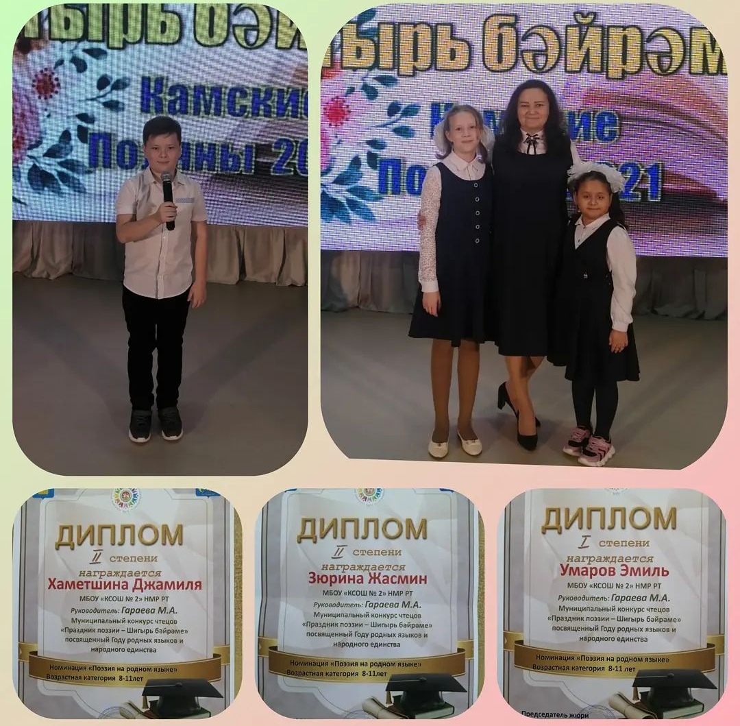 Учащиеся нашей школы приняли участие в муниципальном конкурсе чтецов "Праздник поэзии", посвященном Году родных языков и народного единства. Поздравляем их с победой. (Учителя: Михалаш Т.В., Агмалова И.Р., Гараева М.А., Хусаинова Э.А.)