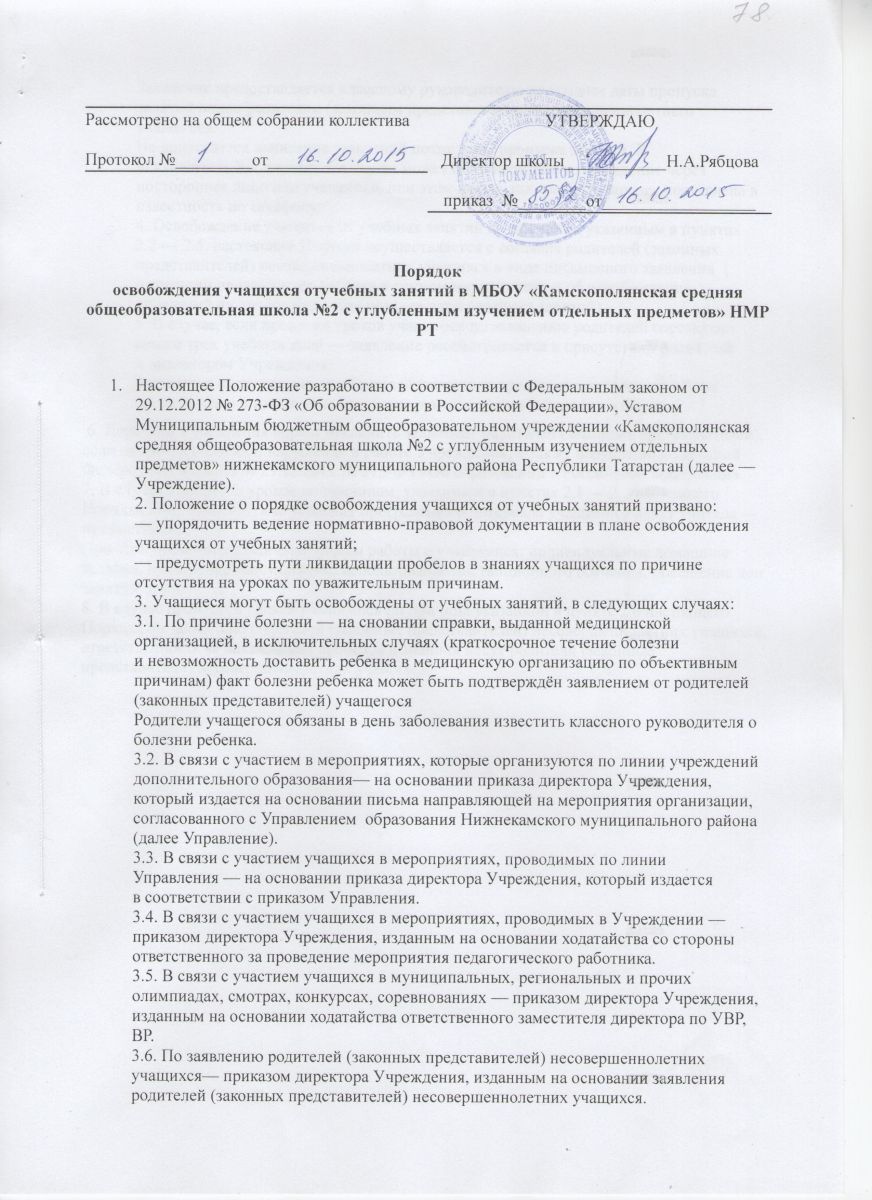 Положение о запрете пользования мобильными телефонами во время учебного процесса (2017)