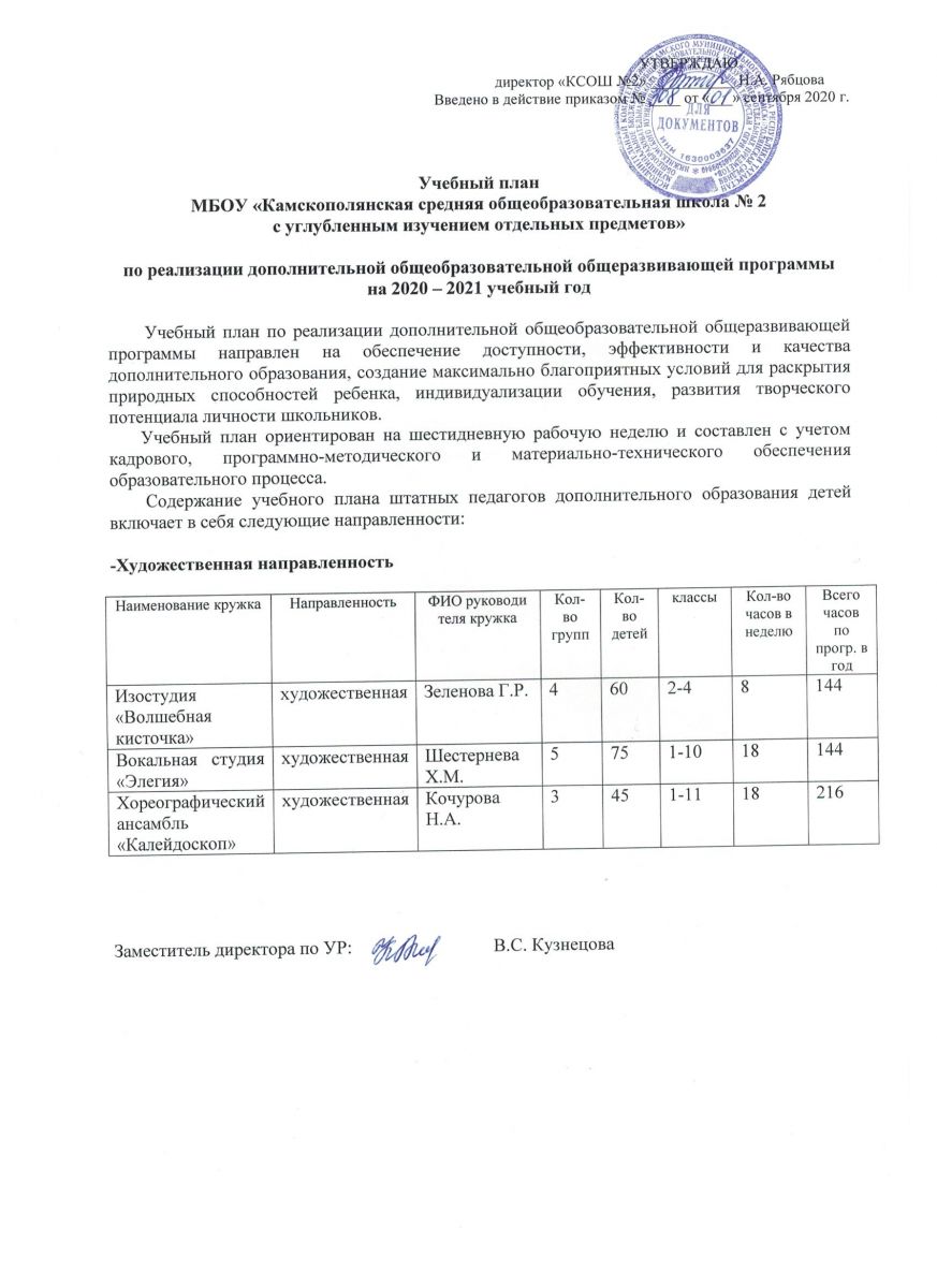 Дополнительная общеобразовательная общеразвивающая программа КСОШ №2