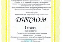 Новогодним подарком колледжу стала очередная награда музея «Дорогами войны наших земляков» за победу в конкурсе проекта «Герои Отечества» в номинации «Лучший музей (музейная экспозиция), посвященный увековечиванию памяти защитника Отечества и совершенных ими подвигах» среди профессиональных образовательных организаций Республики Татарстан» Руководителю музея Н.Евлентьевой вручен Диплом I степени. Поздравляем!