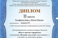 На базе Бугульминского профессионально-педагогического колледжа состоялся Республиканский заочный конкурс буклетов по теме противодействия терроризму «Вместе против терроризма».