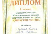 В нашем колледже прошел Межрегиональный конкурс творческих и проектных работ «ДИНАСТИИ РОССИИ», где наша студентка Ларина Ольга из 211группы с достоинством заняла почетное 1 место. По окончании конкурса директор колледжа лично поблагодарил ее за успешное выступление.