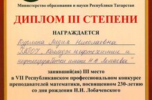 Участие в VII Республиканском профессиональном конкурсе преподавателей математики, посвященного 230-летию со дня рождения Н.И. Лобачевского 27.12.2022