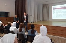 Сегодня в нашу гимназии приехали гости из Гонконгского университета. Им провели экскурсию по школе, где они познакомились с нашими учениками. Старшеклассникам они рассказали, как можно поступить в их учреждение.