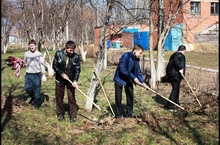 В лицей-интернате №24 объявлен месячник уборки территории. Каждому классу выделили участок, за который они ответственны