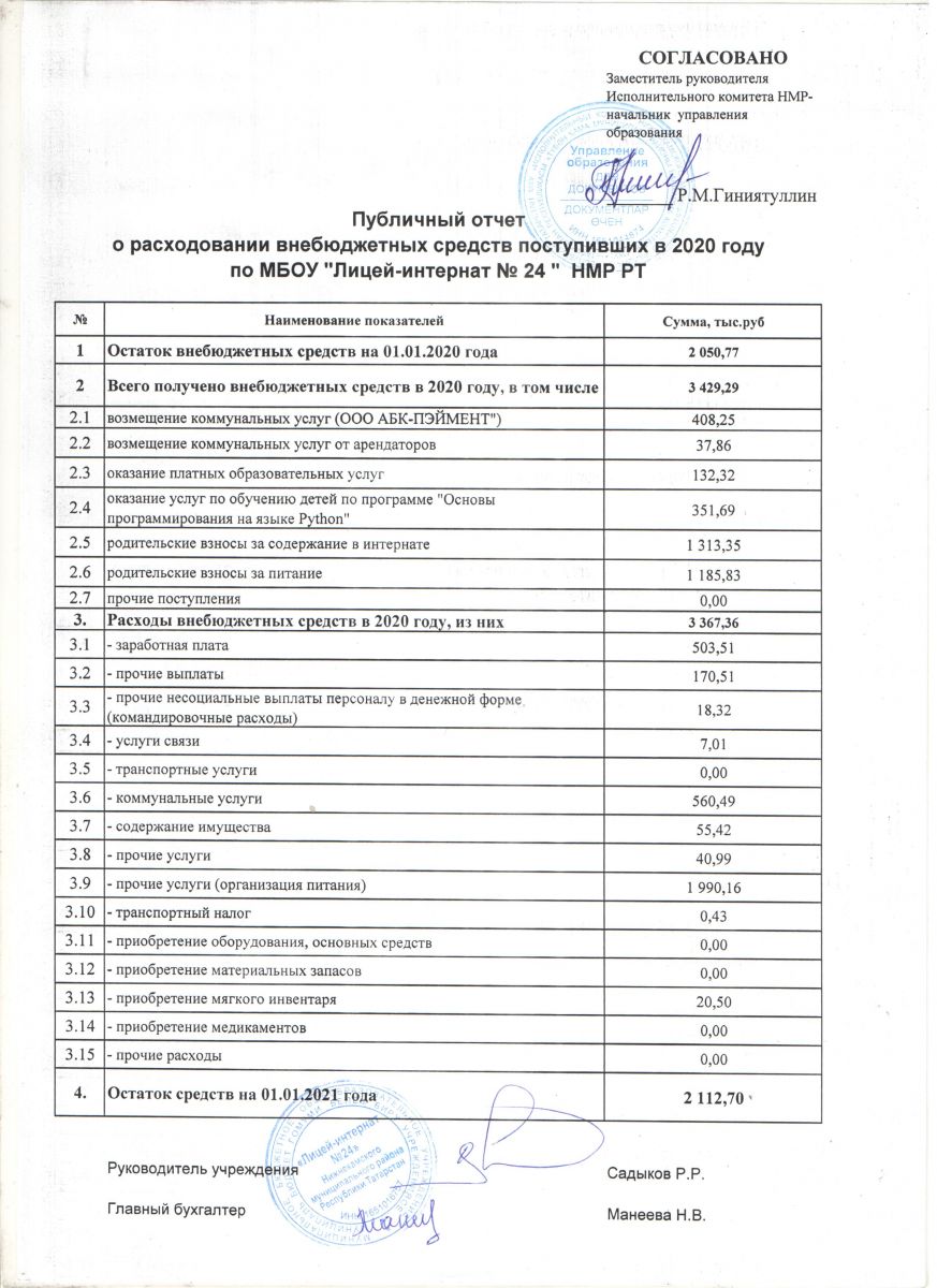 Публичный отчет о расходовании внебюджетных средств за 2020 год