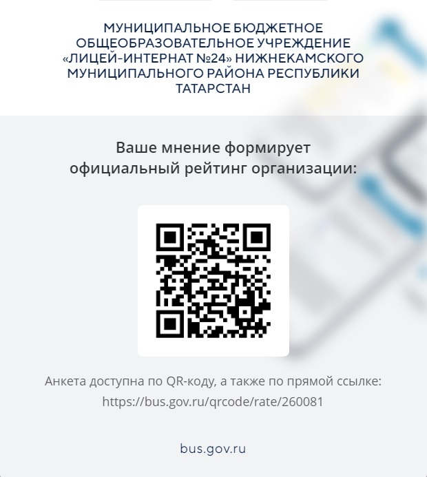 и отсканируйте QR-код или пройдите по ссылке https://bus.gov.ru/qrcode/rate/260081