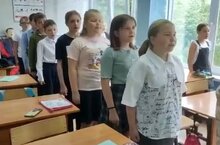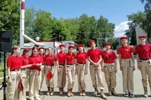 Юнармия отряды, Рәсәй гимнын башкарып, Россия көненә багышланган акциядә катнаштылар. . -