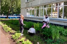 Во вторник ребята приводили в порядок клумбы и дорожки вокруг лицея.