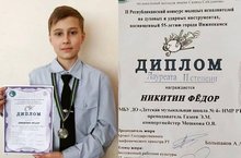 Ученик 5ю класса Никитин Федор стал лауреатом ll степени во ll Республиканском конкурсе молодых исполнителей на духовых и ударных инструментах, посвященный 55-летию города Нижнекамск.