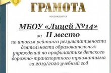 По итогам рейтинга результативности деятельности образовательных учреждений по профилактике детского дорожно - транспортного травматизма за 2019 - 2020 учебный год лицей занял почетное 2 место и был награжден ценным подарком.