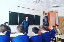 28 февраля состоялась беседа начальника караула ПЧ-63, старшего лейтенанта Шумкова П.А. с 9 - ми классами по профилактике правонарушений пожарной безопасности.