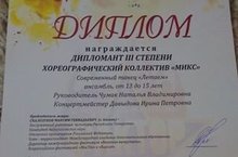 1 декабря в городе Набережные Челны прошёл Всероссийский фестиваль-конкурс детского, юношеского и взрослого творчества «Следуй за мечтой!» Фактор Успеха, в котором наш хореографический коллектив "Микс" принял участие с новым танцем «Летаем».
