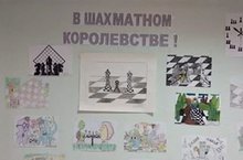 На первом этаже начального блока организована выставка рисунков "В шахматном королевстве". -