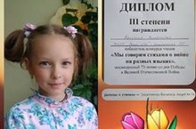 Поздравляем Заказчикову Василису (2г - Чагина Светлана Владимировна), победителя конкурса чтецов "Мы говорим стихами о войне на разных языках", Диплом lll степени. Так держать, Василиса!